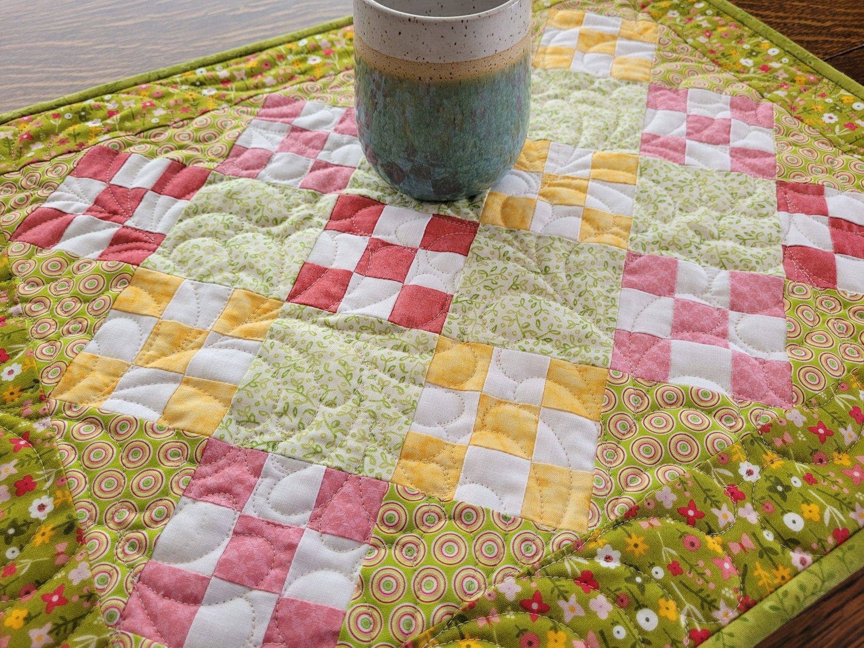A handmade gift idea for the home. Whether dressing up the coffee table or dinner table, this small quilt is full of happy vibes. 😊🌼🌷