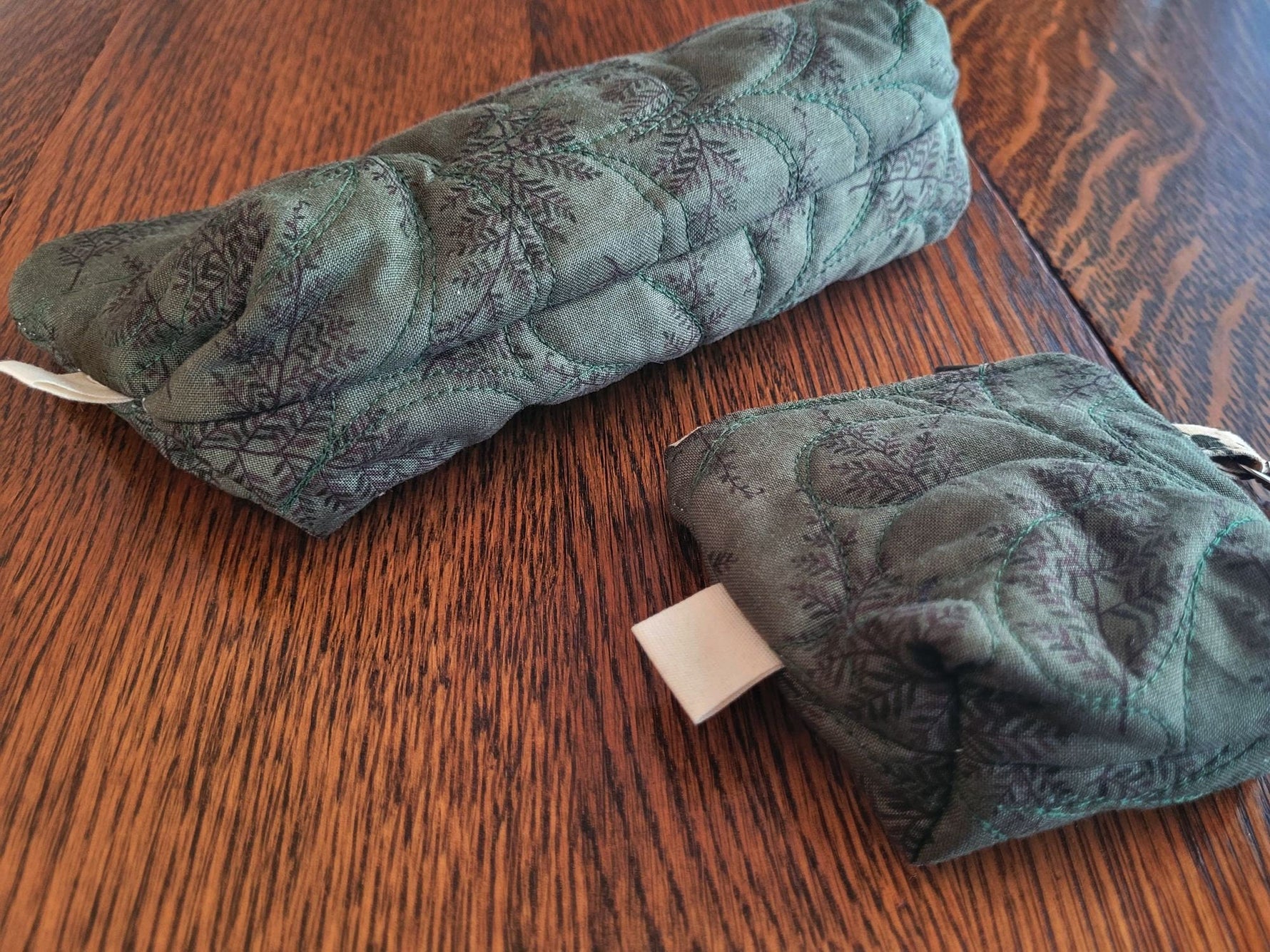 This listing is for a set of the forest green fern bags shown in the first photos, one of each size.