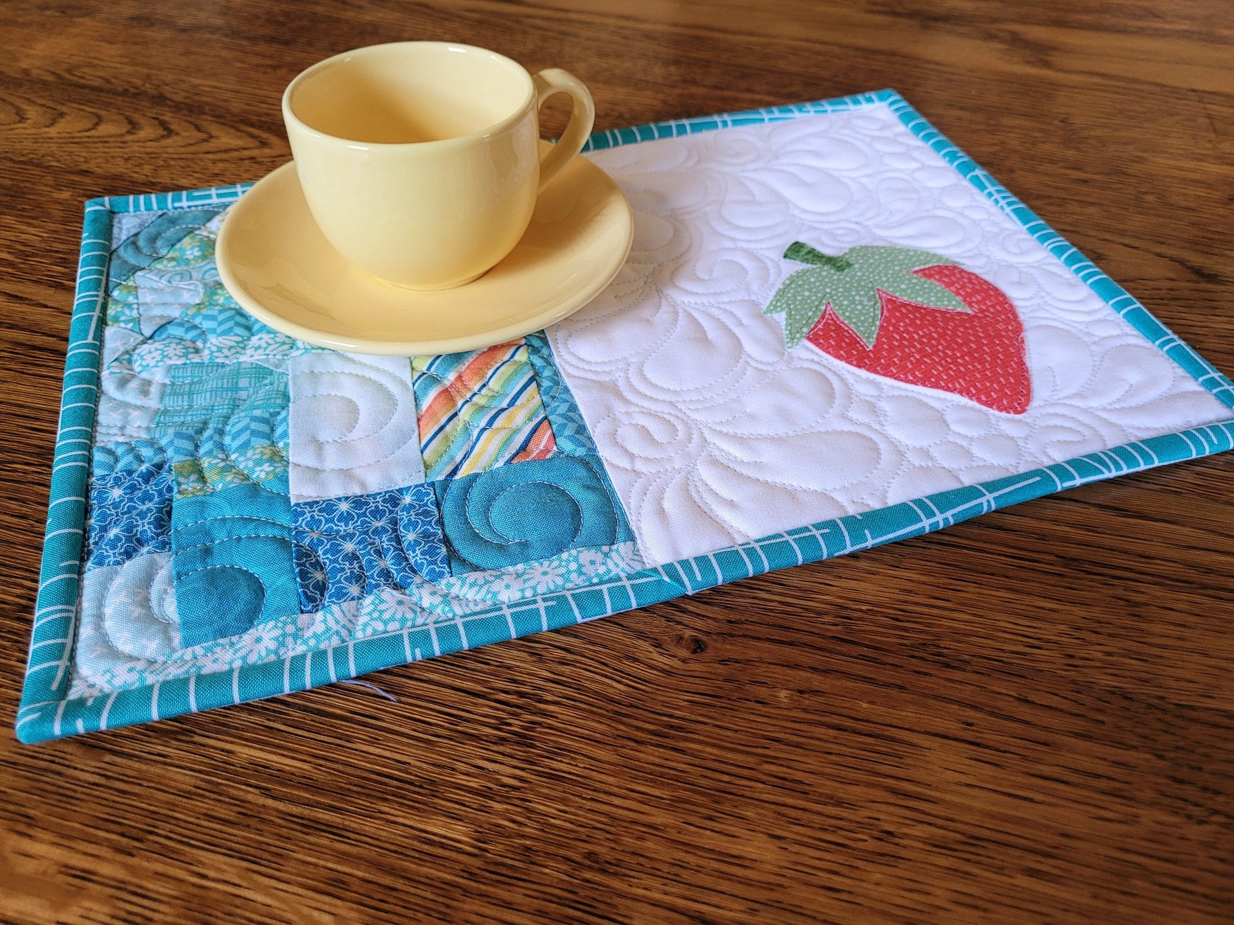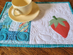 Strawberry Mini Quilt , Mug Rug & Desk Coaster