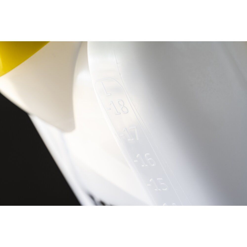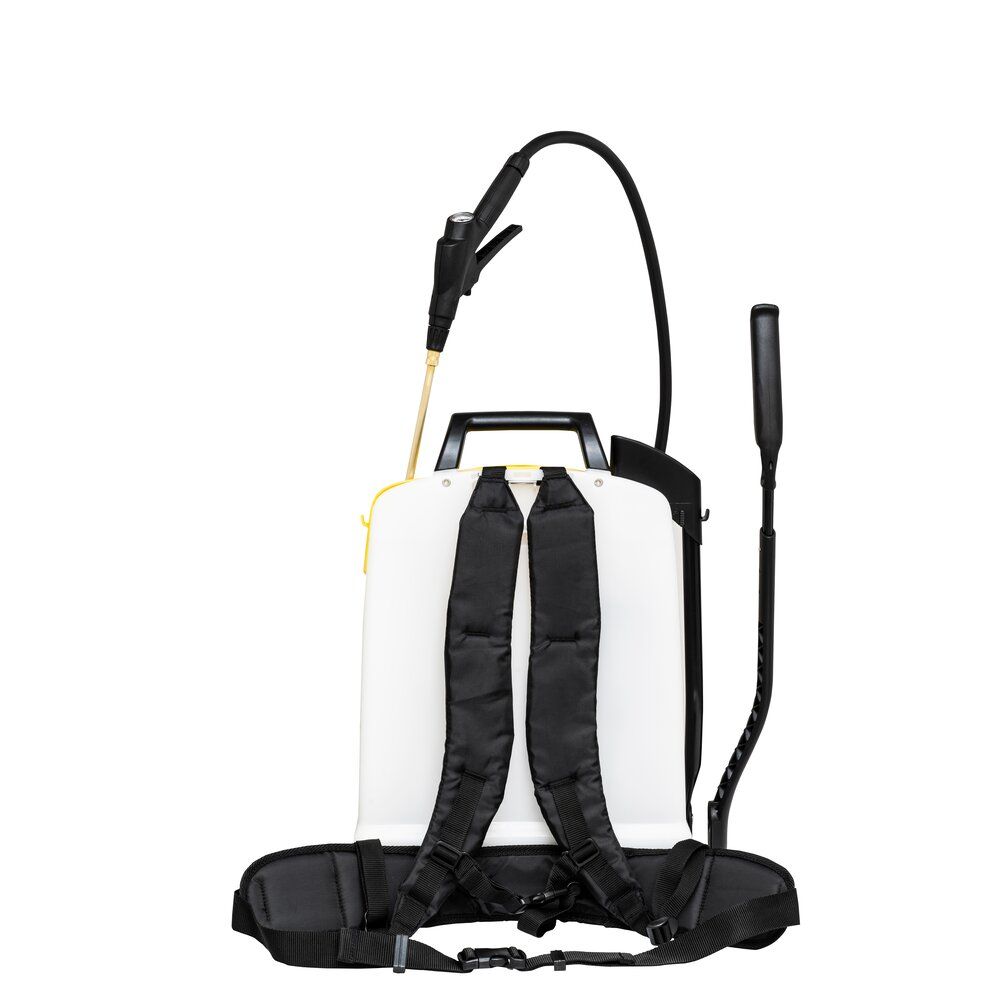 18 L, ergonomic shut-off valve with filter and control pressure gauge, pump lever adjustable in length and width, professional back harness with chest strap and hip belt, FPM seals, hollow c