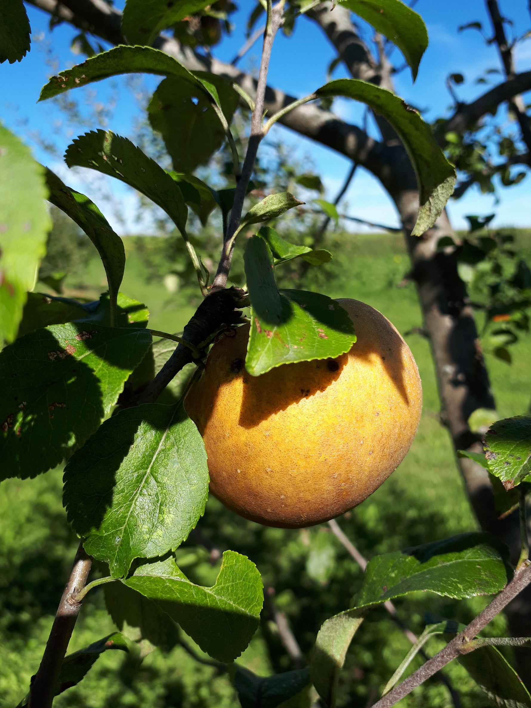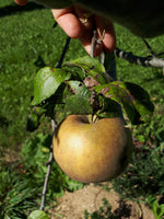 Why We Grow It: Although the russet, a thick rough skin, coating this apple can be an acquired taste, there is a reason this apple has remained so popular. The fruit itself is an attractive gold dotted with yellow and it has an excellent sweet, nutty flavour. They are delicious fresh, when used for cooking, and in ciders. The trees are known for producing good, regular crops.