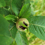 Why We Grow It: Medlars are truly a unique fruit! When ripe, they are hard and inedible but if you let them blet (essentially rot) they develop a taste and texture similar to applesauce. They can be eaten raw or used to make things like medlar cheese or medlar jelly. It is certainly an acquired taste but a fun option if you are looking or something unique and/or want to enjoy your own fruit into the winter.